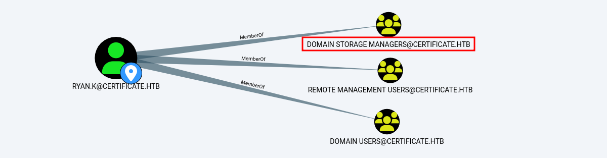 SMB 10.10.11.71 445 DC01 [+] certificate.htb\ryan.k:Doom123!Podemos acceder por winrm con los usuarios. El usuario lion.sk tiene la bandera user.txt.