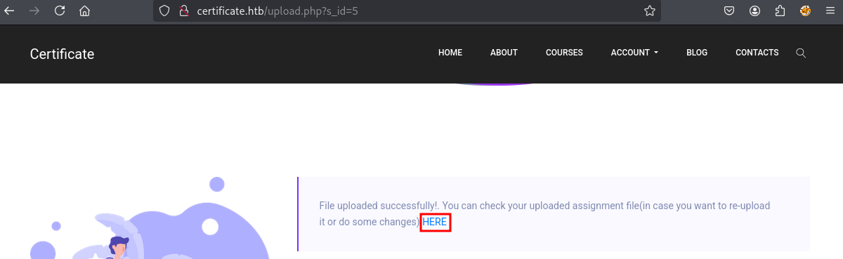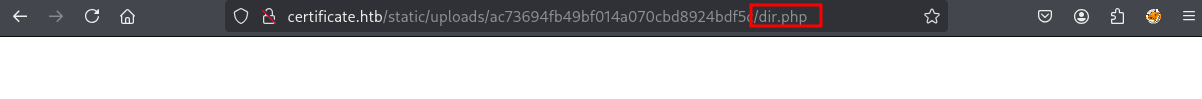 http://certificate.htb/static/uploads/ac73694fb49bf014a070cbd8924bdf5c/nc.phpServing HTTP on 0.0.0.0 port 80 (http://0.0.0.0:80/) ...