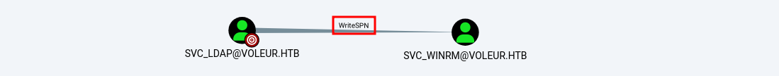El usuario svc_ldap tiene el permiso WriteSPN sobre el usuario svc_winrm esto nos permite realizar Targeted Kerberoasting y obtener un hash para posteriormente romperlo.